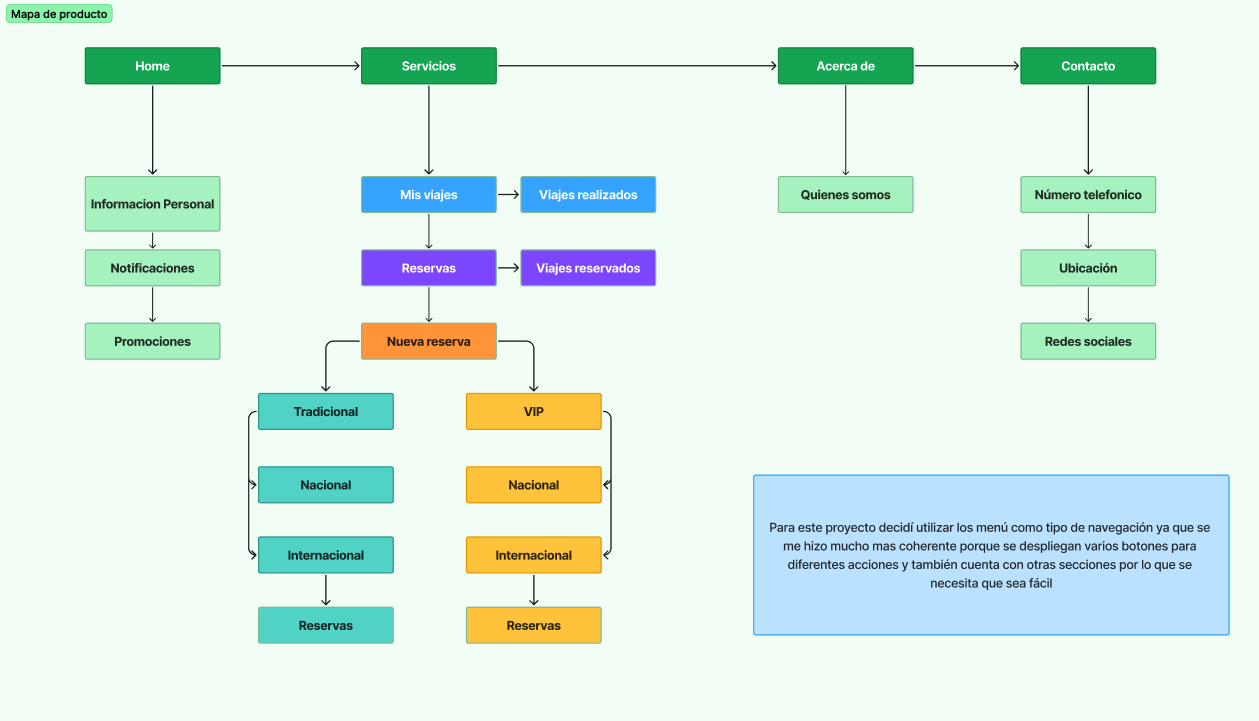 Realicé un mapa de producto para estar seguro de que el flujo se entendiera y que sería sencillo de realizar para los desarrolladores, ya que ellos juegan un punto importante en como se desarrolla nuestra visión.